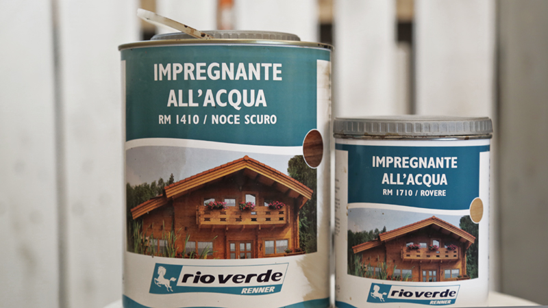 - vernici per il legno: impregnante all’acqua RM 1410 (noce scuro), impregnante all’acqua RM 1710 (rovere)