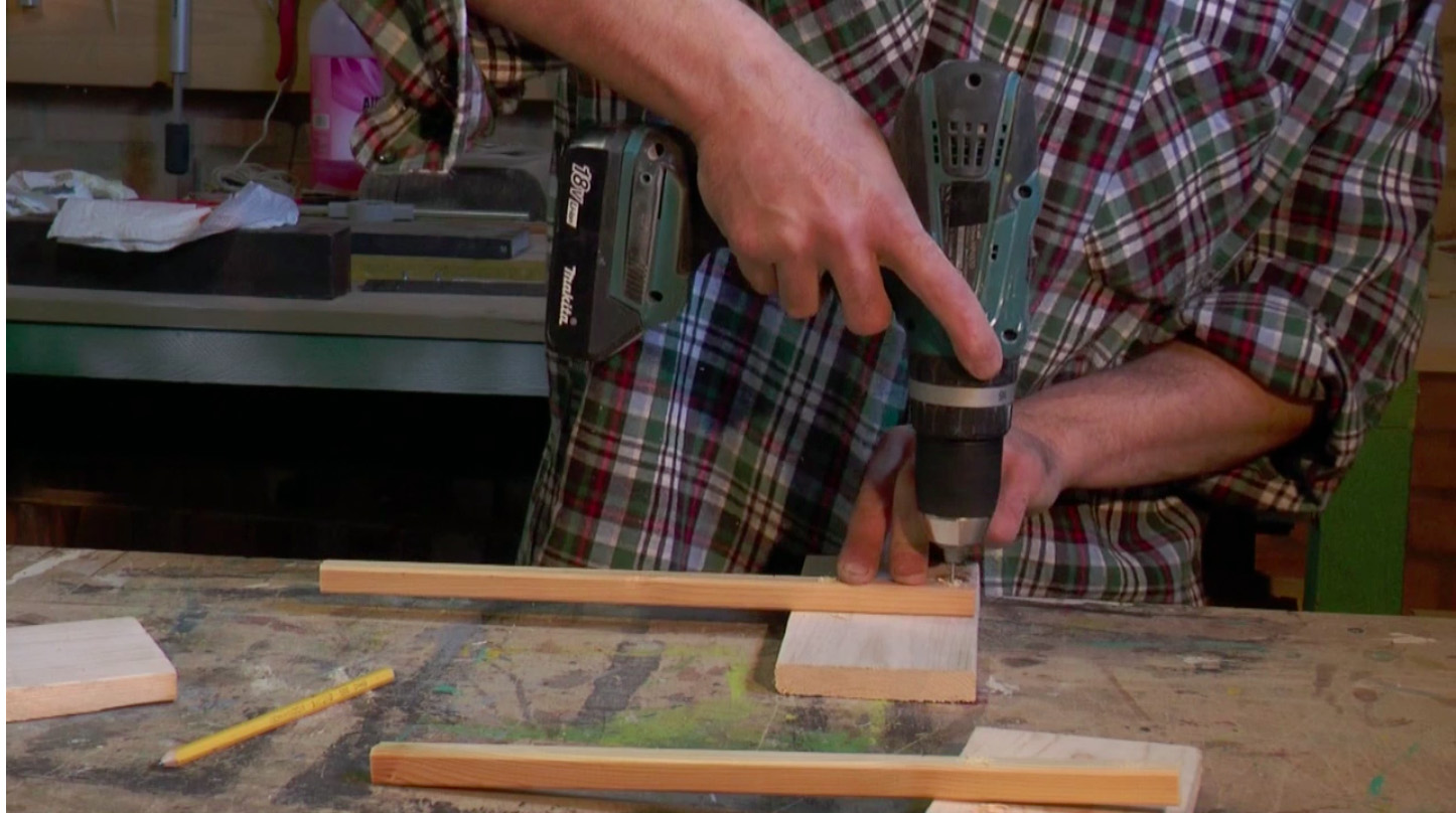 - appoggiamo la stecca sul retro della tavoletta in posizione centrale e perforiamo con il trapano.