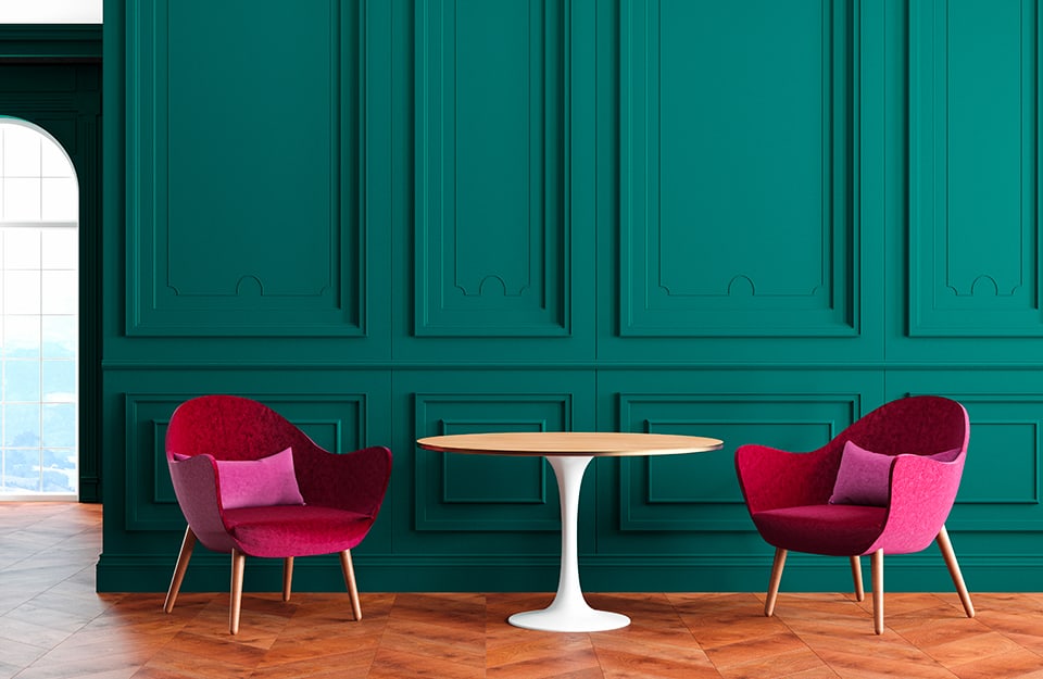 - colori verdi: quelli più profondi sono i complementari del bordeaux, dunque il contrasto sarà molto forte. È un abbinamento piuttosto eccentrico ma molto intenso e dal sicuro effetto “drammatico”. Con il verde salvia, invece, si crea un ambiente sofisticato e dall’eleganza un pizzico stravagante;