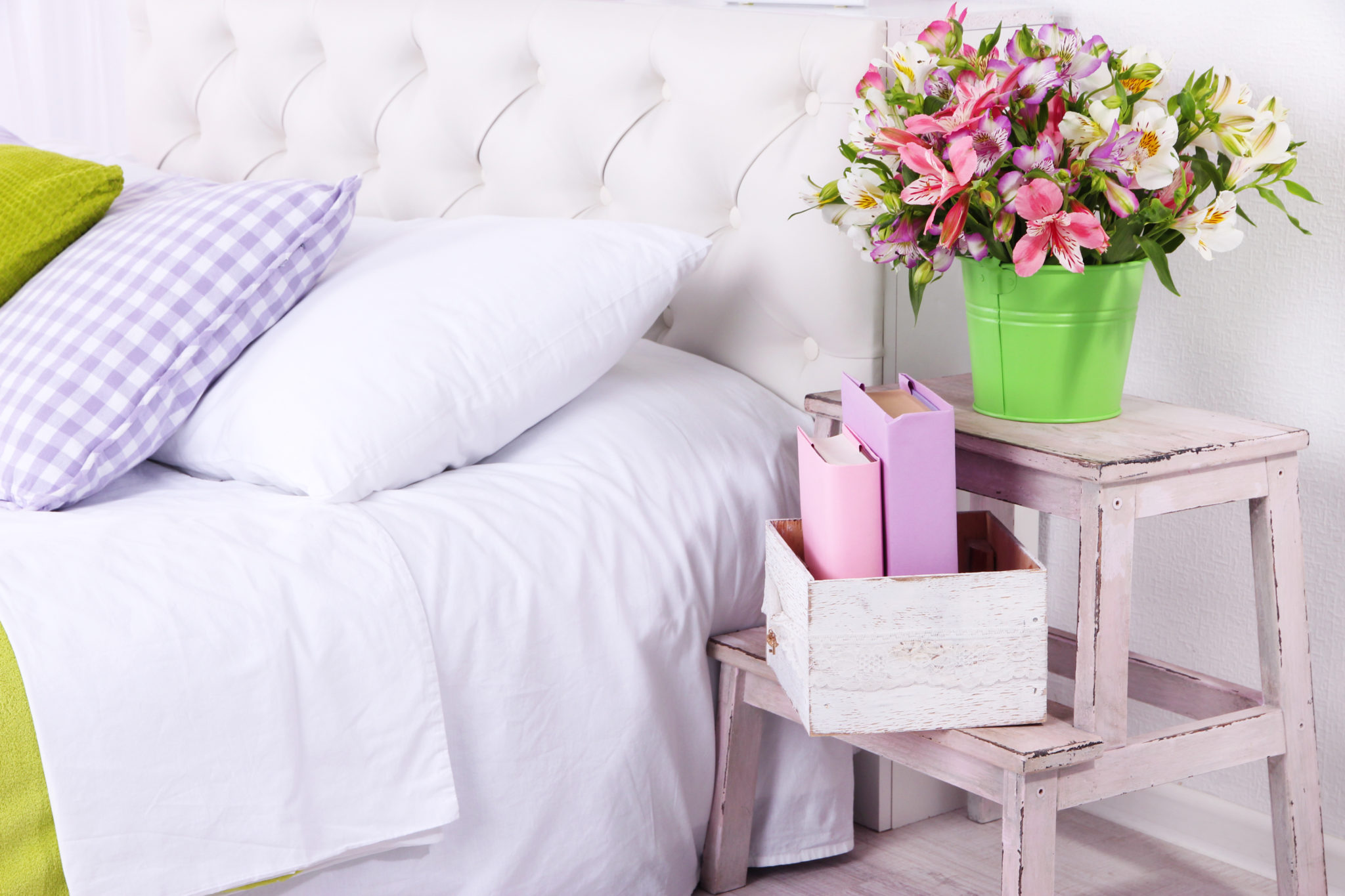 Una piccola scaletta può diventare facilmente un comodino dal sapore vintage. Posizionatela di fianco al letto e posatevi sopra una lampada. Gli altri ripiani possono tornare utili per appoggiare libri o qualunque altro oggetto vogliate tenere a portata di mano.