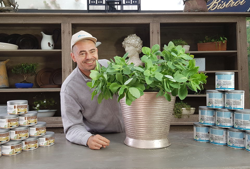 È giovedì, giorno di tutorial: oggi i nostri specialisti in verniciatura trasformeranno un semplice portavaso in un oggetto di tendenza, perfetto per dare un tocco di classe all’outdoor ma anche per portare una ventata di freschezza in un indoor urbano. Come sempre, i nostri ingredienti segreti – ma che vi sveliamo in confidenza – sono la vernice all’acqua dai colori pastello Vintage Prestige e la vernice metallizzata all’acqua della linea Golden Prestige, fiori all’occhiello della linea Rio Verde di Renner Italia. L’effetto che vedremo prendere corpo davanti ai nostri occhi è Sabbie astrali, un nuovo effetto materico increspato, in questo caso utilizzato su metallo, ma valido anche per legno, ceramica, plastica e vetro grazie alle esclusive vernici delle linee Prestige di Rio Verde.