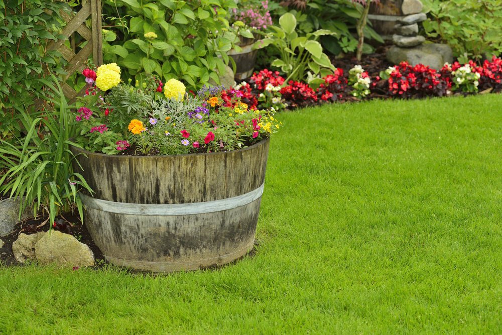 Le nostre scorribande creative terminano in giardino. Per la fioriera in legno, recuperiamo la parte restante della barrique usata per il pouff in salotto.