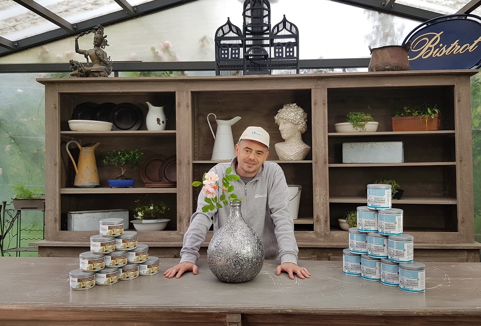 Ben ritrovati al consueto appuntamento con i tutorial Rio Verde: oggi i nostri specialisti della verniciatura trasformeranno una damigiana di vetro in un fantastico portafiori, perfetto come complemento d’arredo dell’indoor, regalo ideale per le trendsetter più attente ai must del momento. La trasformazione, come ormai abbiamo imparato, avverrà grazie a un sapiente – quanto semplice – uso delle vernici metal all’acqua della linea Golden Prestige di Rio Verde, mixate con astuzia alle vernici dai colori pastello Vintage Prestige. L’effetto che renderà possibile questa trasformazione è Terre Lunari: increspature e rilievi articolano la superficie e la rendono preziosa. Un effetto ipermaterico, in cui i colori assumono una spiccata tridimensionalità.