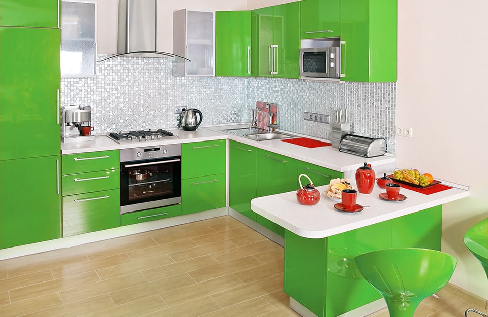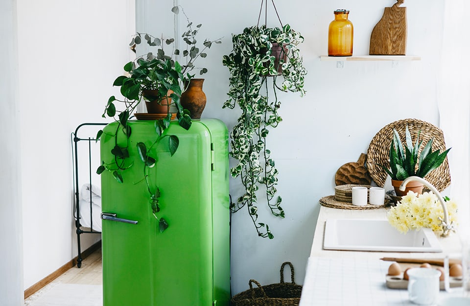 Per i più coraggiosi, si può pensare all’intero arredo di una cucina componibile. Altrimenti un buona idea potrebbe essere colorare in zoomer green un frigorifero vintage, come si vede nella foto di copertina.