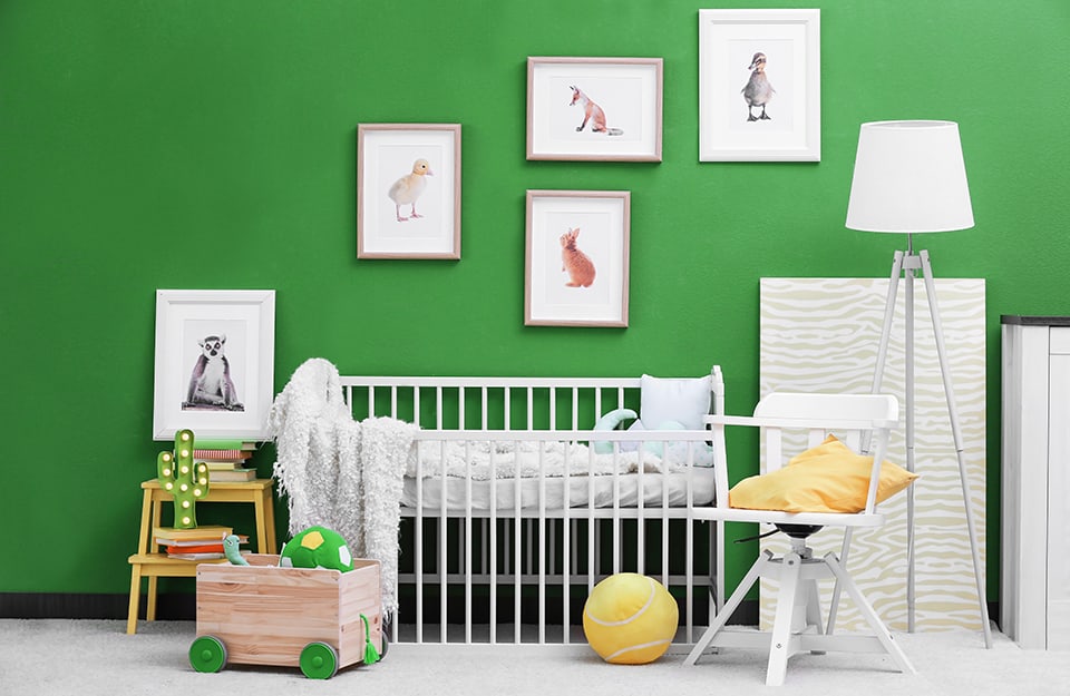 In una stanza dall’atmosfera giocosa come la cameretta dei bambini si può anche immaginare un’intera parete (ma una sola, giocando a contrasto con le altre, e con soffitto e pavimento). Per i neonati, invece, è preferibile puntare su tonalità più tranquille e rilassanti.