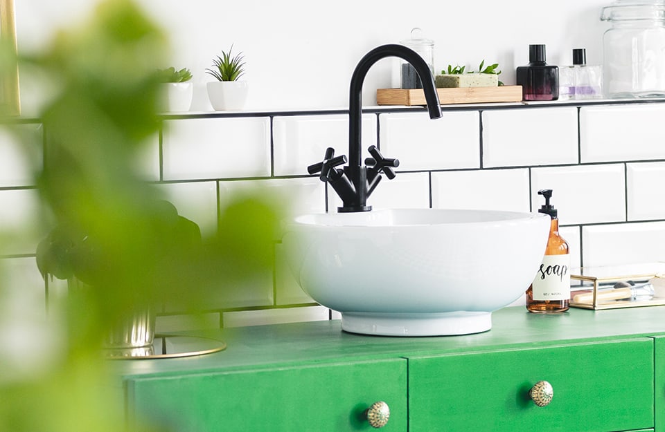 Nella stanza da bagno il verde vivido sposa bene singoli pezzi d’arredo, così come la rubinetteria, specialmente se in abbinamento col bianco e col nero oppure con tinte più neutre e materiali naturali come il legno e il vimini.